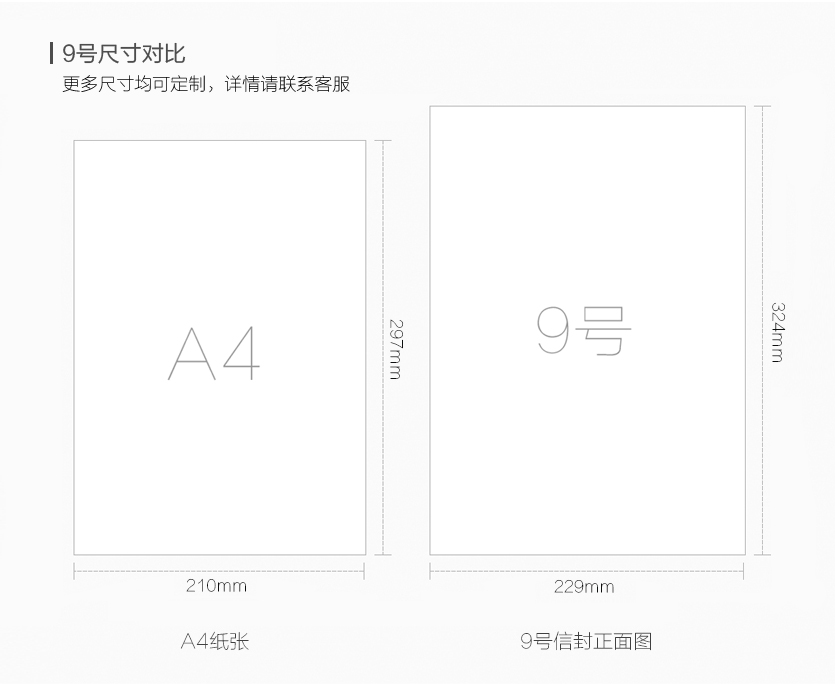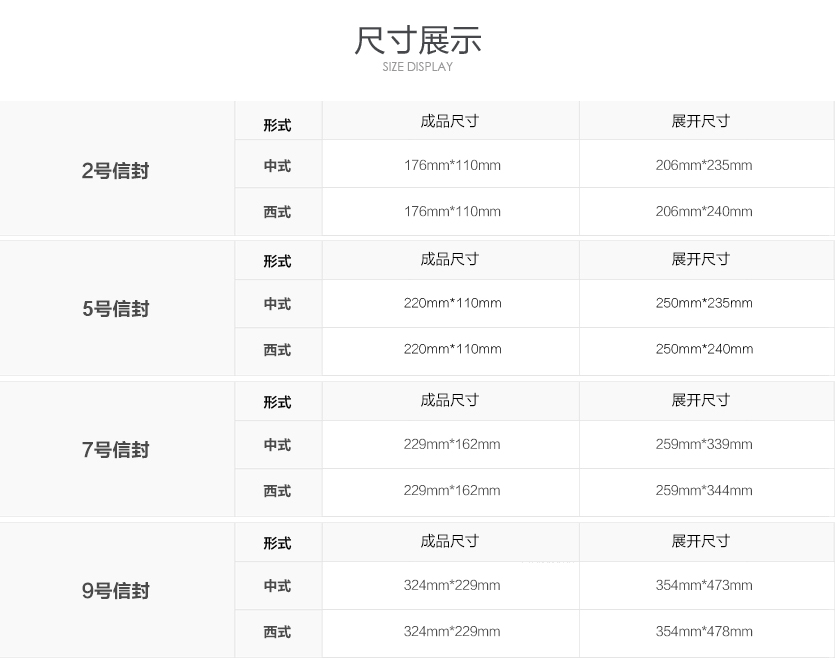 首先要了解信封的幾個基本的尺寸:5號信封:220mm*110mm、6號信封:230mm*120mm、7號信封:230mm*160mm、9號信封:324mm*229mm